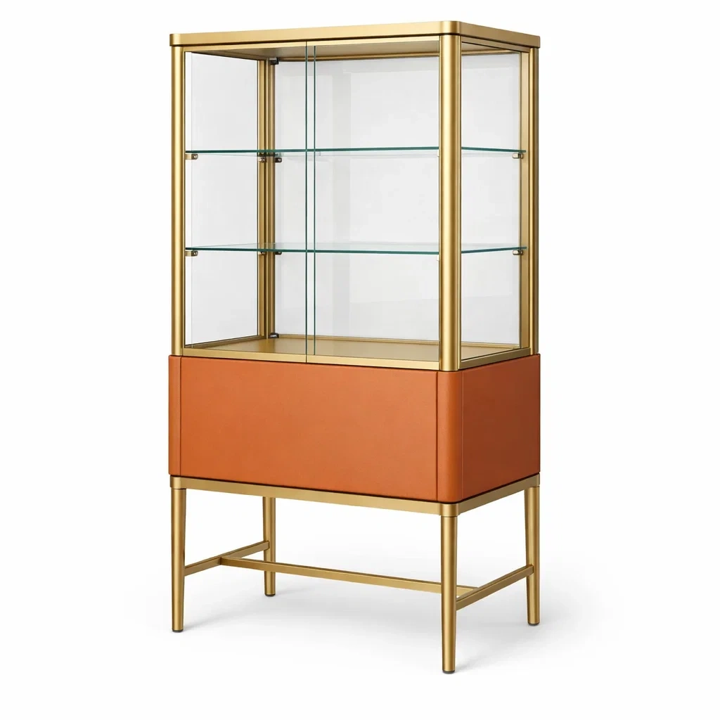 Vitrine gehärtetes glas metall gold orange 180 cm