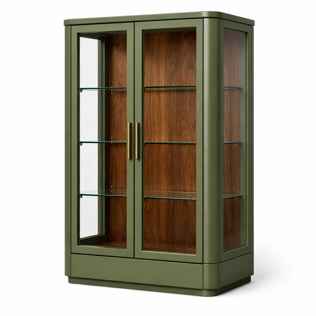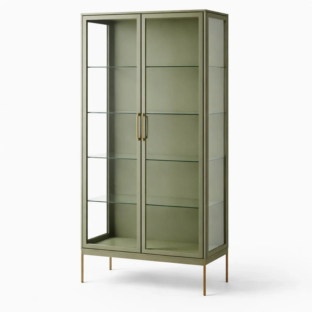 Vitrine holz glas olivgrün 180x100x40 cm