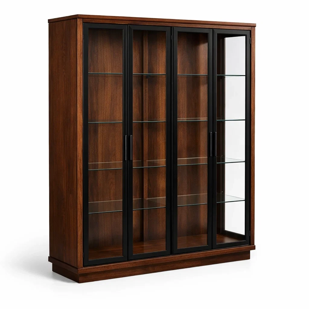 Vitrine glas metallrahmen schwarz 180 cm