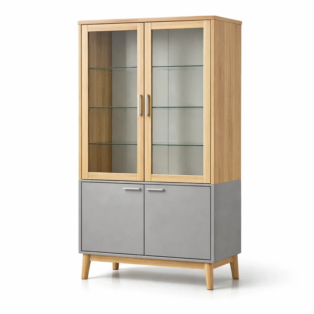Vitrine holz glas metall eiche grau 90x40x180 cm