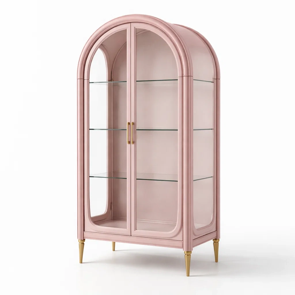 Vitrine holz sicherheitsglas metall rosa 180 cm