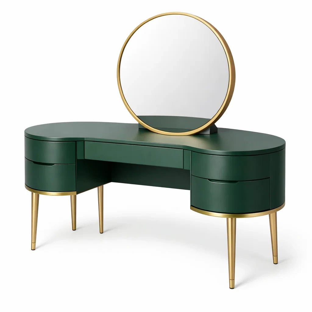 Designmerkmale: Zwei Schubladen, runder Spiegel