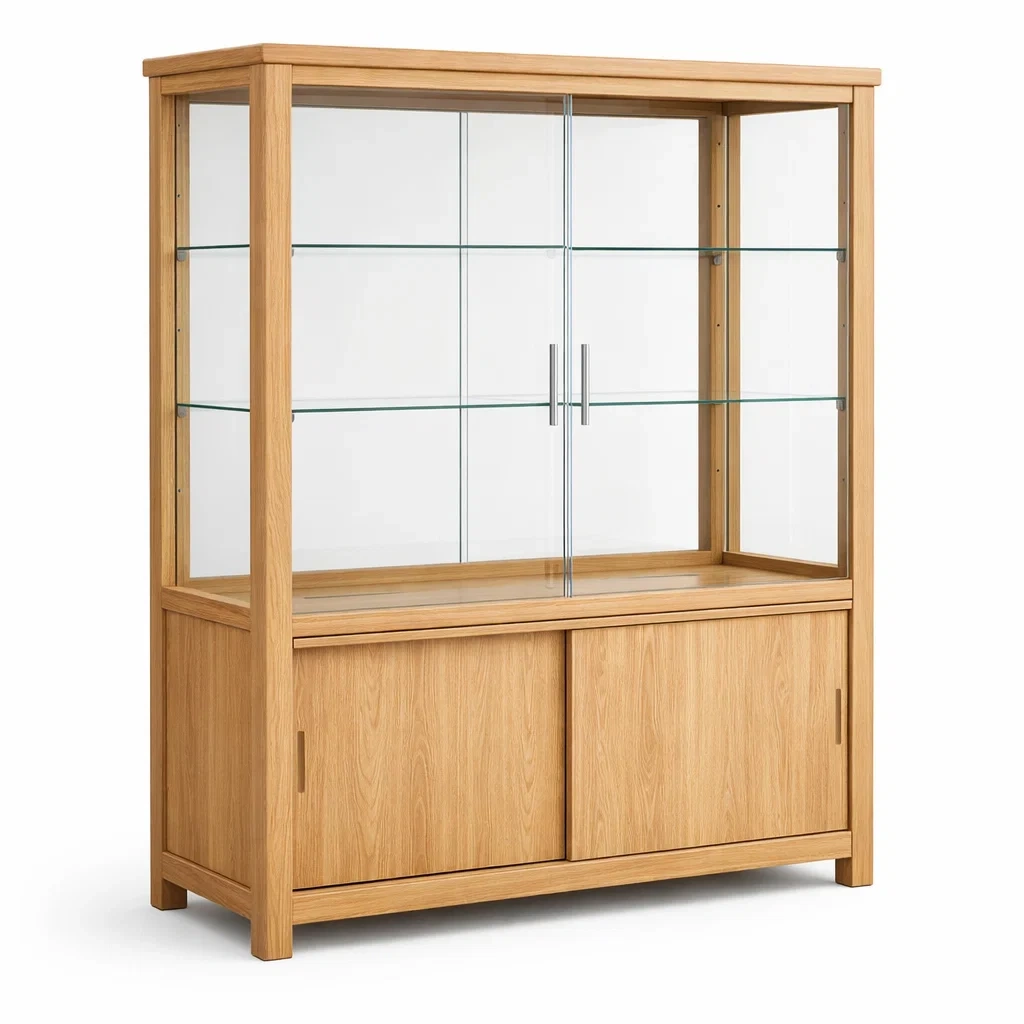 Vitrine eichenholz natur mit gehärtetem glas 120x40x180 cm